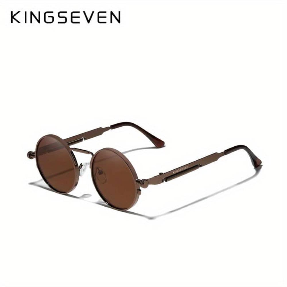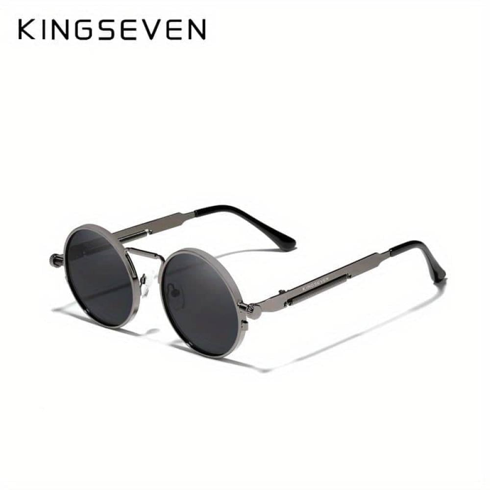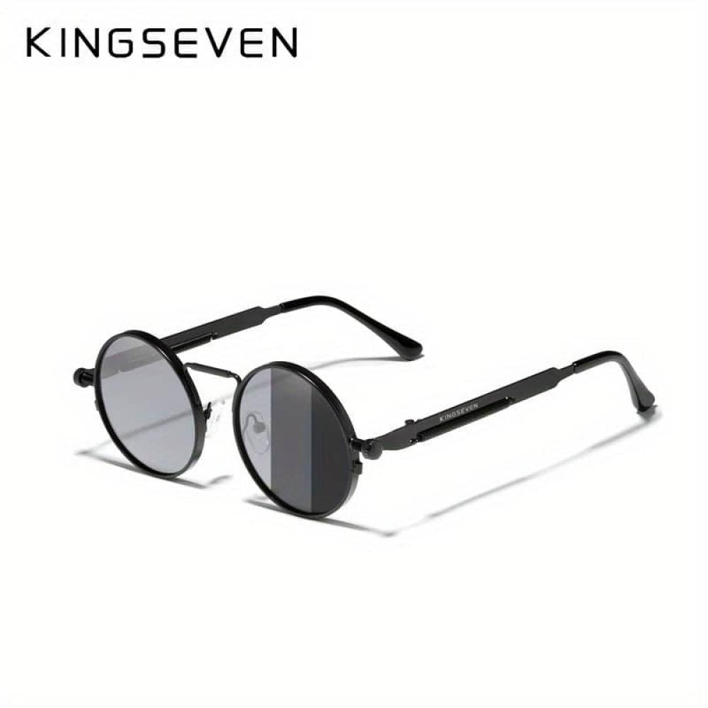 KINGSEVEN، نظارات شمسية مستقطبة بإطار معدني مستدير على الطراز القوطي البانك، مع جسر وذراع معدني، نظارة للرجال والنساء أثناء الرياضات والحفلات والسفر والقيادة، مستلزمات صيد الأسماك دعائم الصور